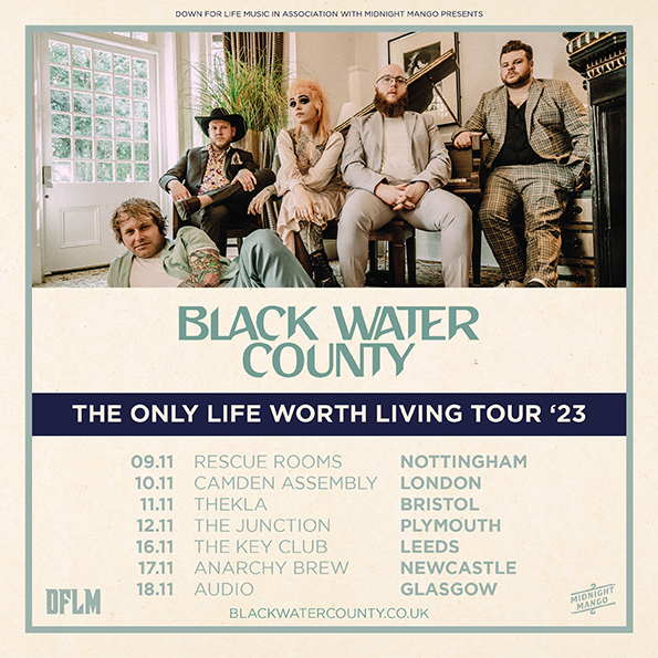 So here I am reviewing The Only Life Worth Living, the third album by South West quintet, Black Water County, and that to me is news in itself! I’d only come across them earlier in the year, after a brilliant set at Bearded Theory, when their mix of Celtic folk tinged punk had everyone jumping at the second stage. How these guys had flown under my radar all this time, is beyond me. Perhaps the similarity of their name to a bunch of “johnny-come-latelies”, [Black Country, New Road] had blinded me to their existence. More likely it’s been down to my relentless pursuit of discovering the best new unsigned bands, playing the toilet circuit of the UK, that my radar simply wasn’t scanning the right frequencies. Again, possibly because my festival diet is more red meat based than Boomtown Fair, WOMAD or Beautiful Days, where they have been frequent performers.