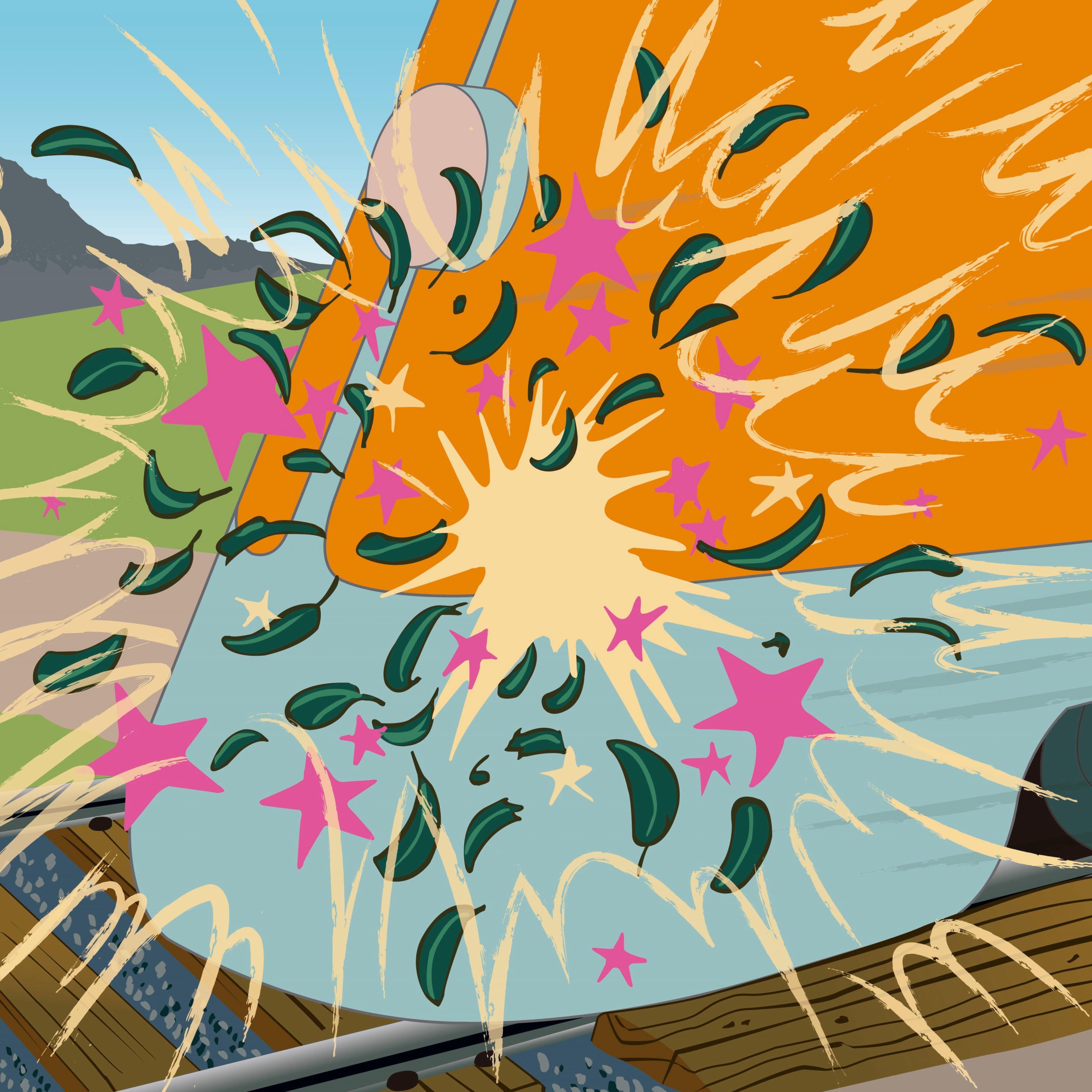 ‘Dances/Curses’ is London psychedelic noise rock sextet Hey Colossus’ 13th album in 17 years of existence. This frequency of output is all the more impressive when you consider that the band’s members all hold down full-time jobs outside the band, as documented by bassist Joe Thompson in his excellent recent book, Sleevenotes. Their sound has evolved from sludge metal-ish early albums like ‘Project Death’ (2007) and ‘Happy Birthday’ (2008) to the kraut-tinged psychedelia of ‘In Black and Gold’ (2015) and ‘Radio Static High’ (2015) to the motorik-driven post-punk of more recent works like ‘The Guillotine’ (2017) and ‘Four Bibles’ (2019). It evolves further into more floaty, sometimes almost ethereal territory on this album, whilst crucially retaining a degree of tightness and discipline.