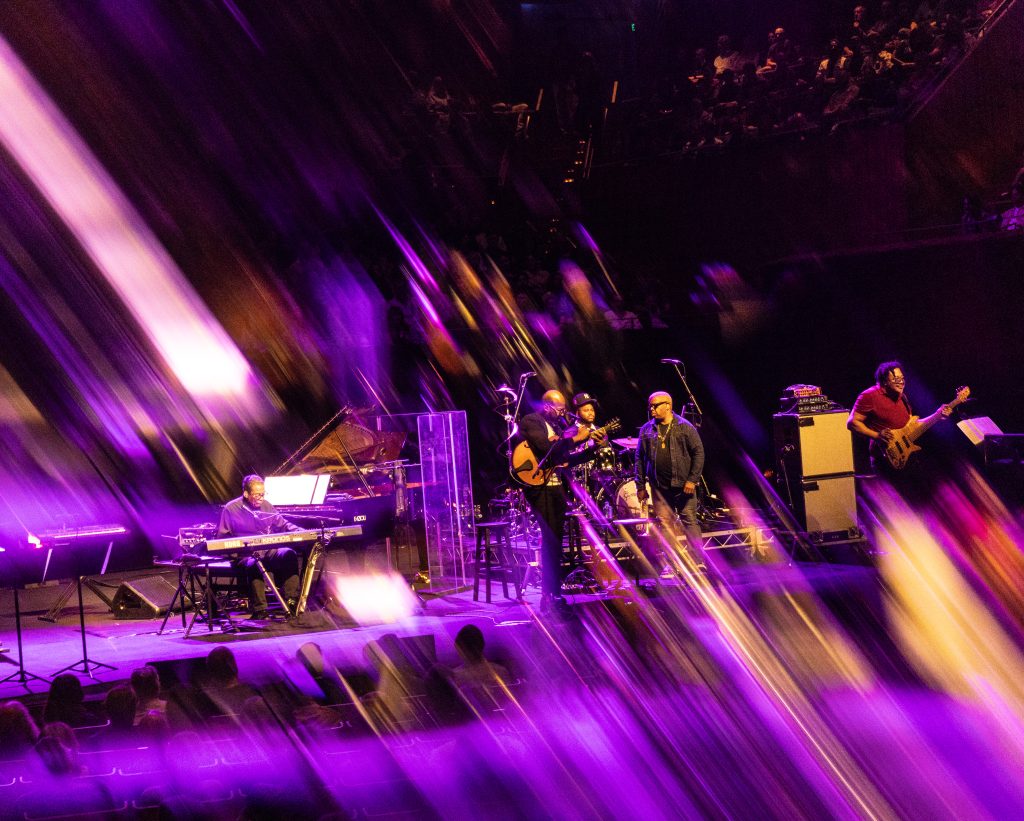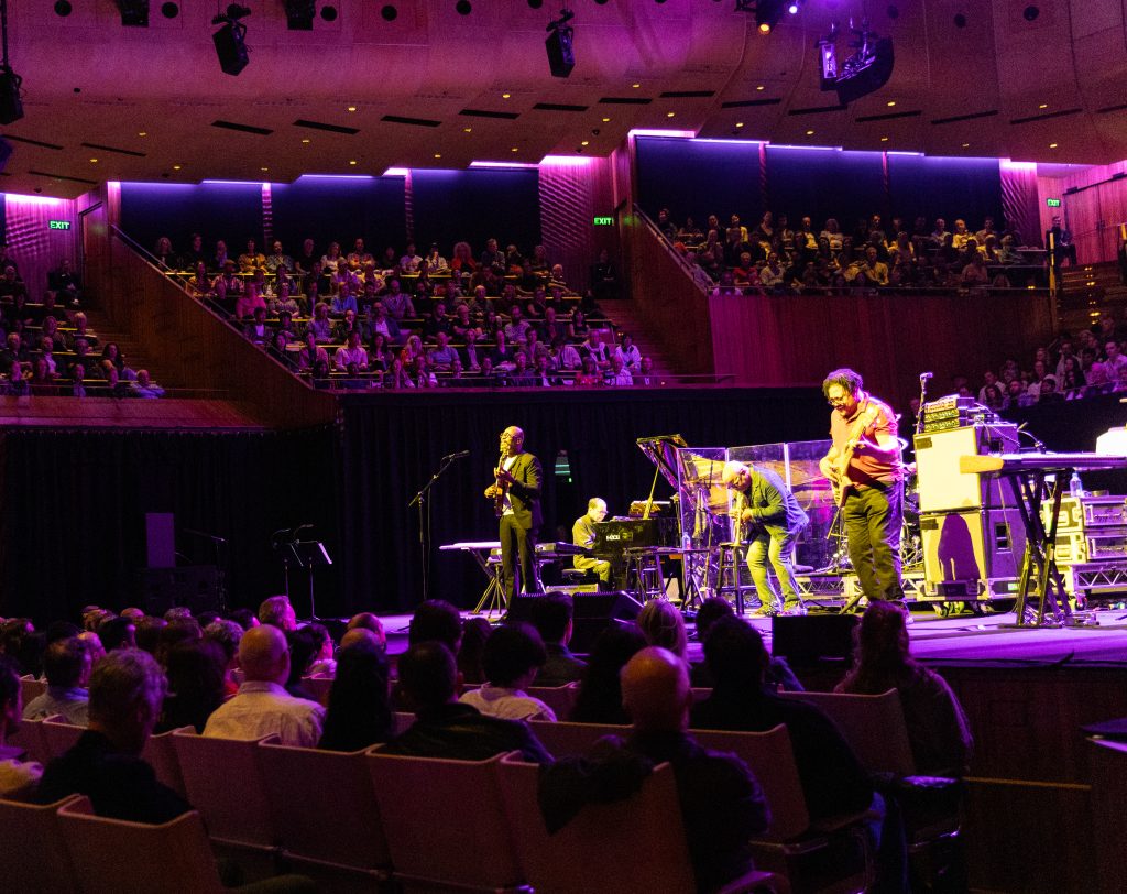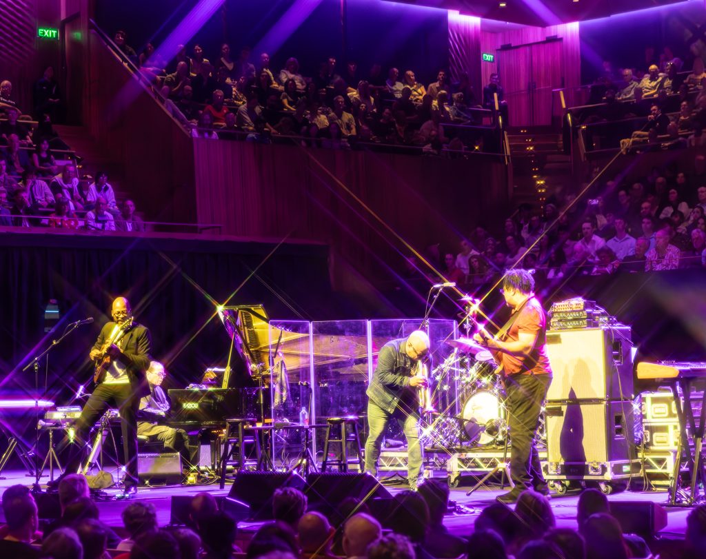 Tonight, he’s back at the Sydney Opera House, playing to a sold out crowd. Hancock and his band drift onto the stage with an ease that only decades of mastery can afford. There’s no rush, no grand entrance, just an unassuming stroll as if they were stepping into a living room jam, not a spotlight. Herbie, with a casual grin, has a young boy by his side. He chats with the crowd, jokes that the youngster should take a spin at the piano.