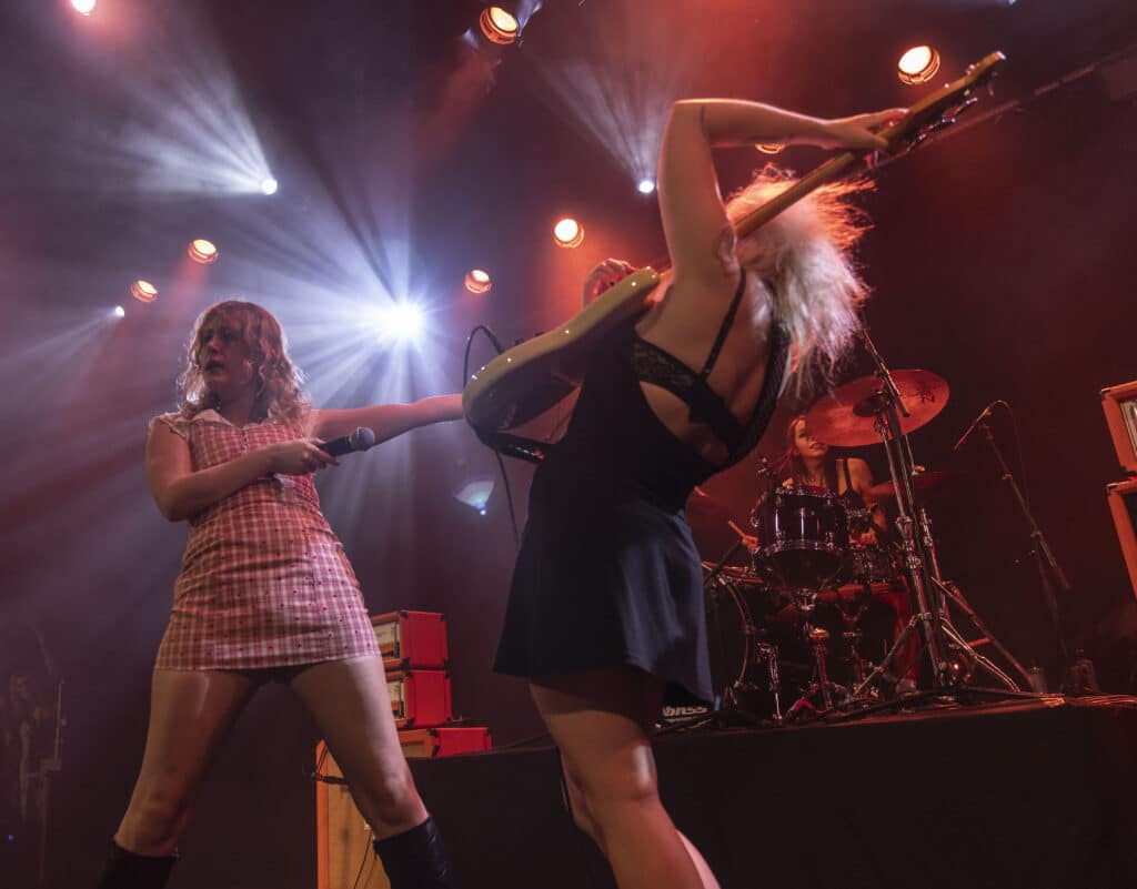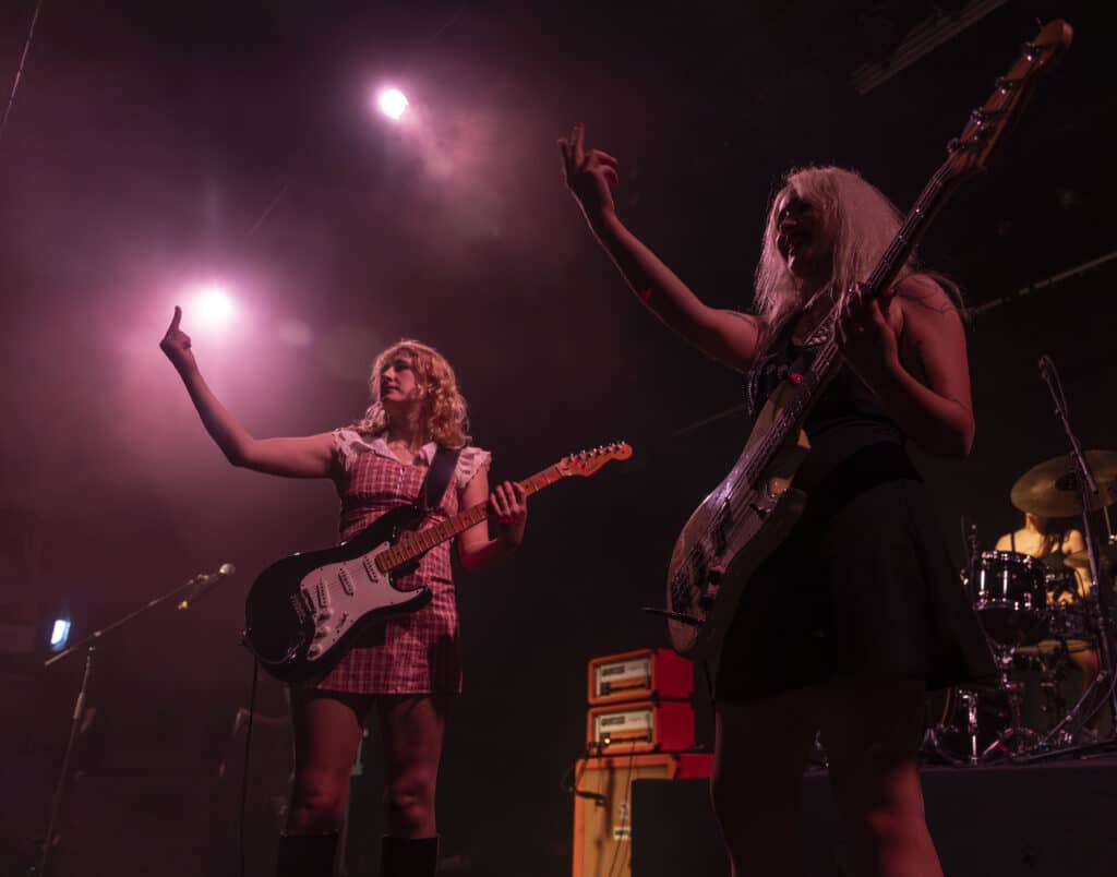 Backseat Mafia clocked their ascent early, watching them mutate from scrappy 300-capacity upstarts into thousand-strong congregation leaders in what felt like the blink of an eye. But statistics don’t capture velocity. Velocity is a force. Velocity is Phoebe Lunny gripping her guitar like it owes her money and Selin Macieira-Boşgelmezstride standing beside her like the last witness to the end of the world.