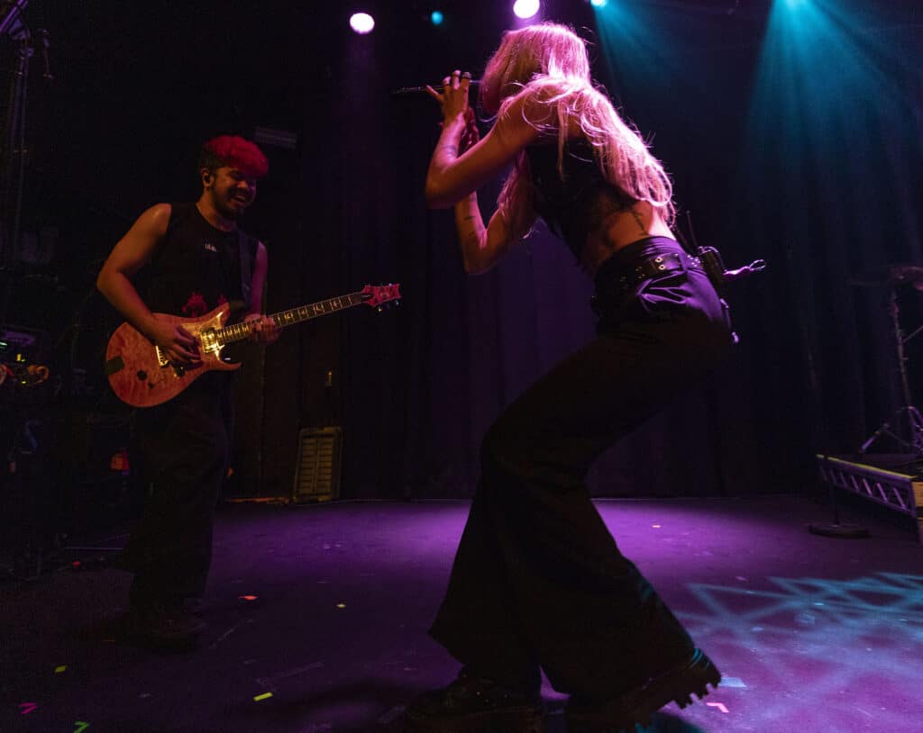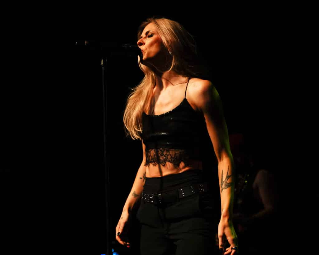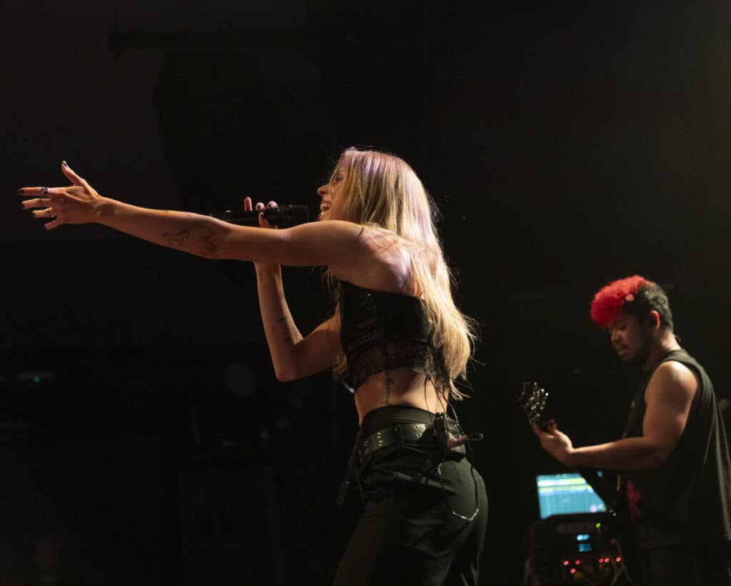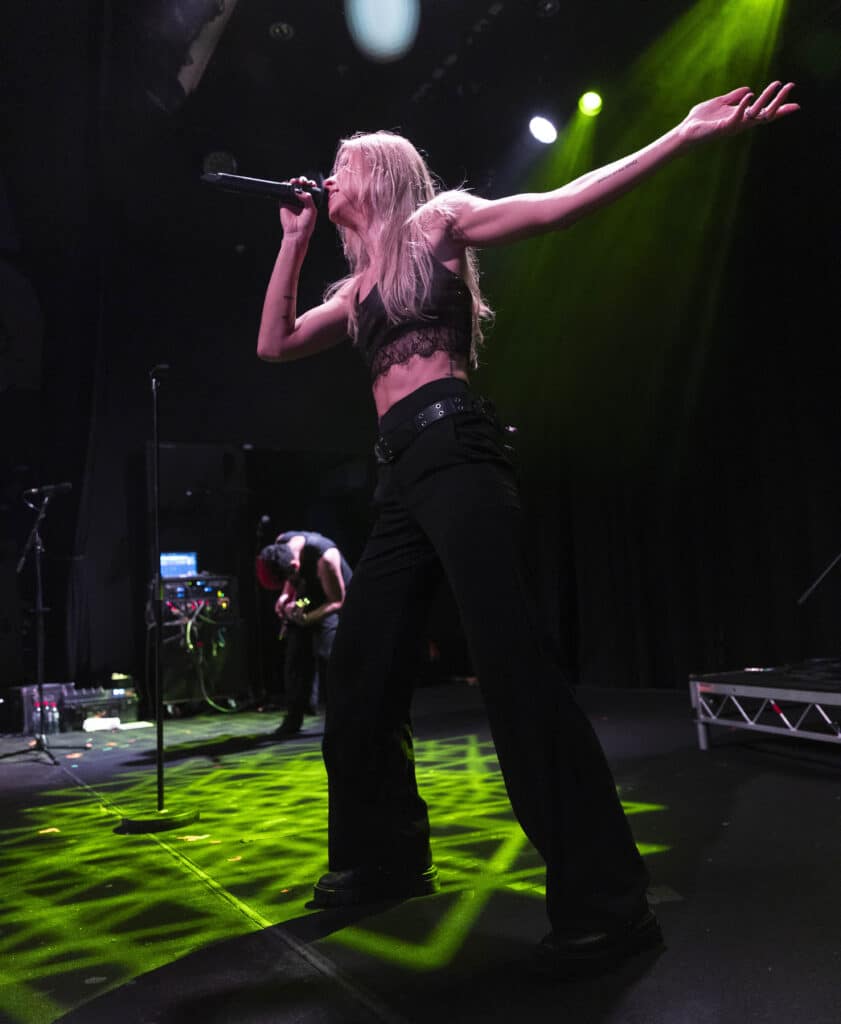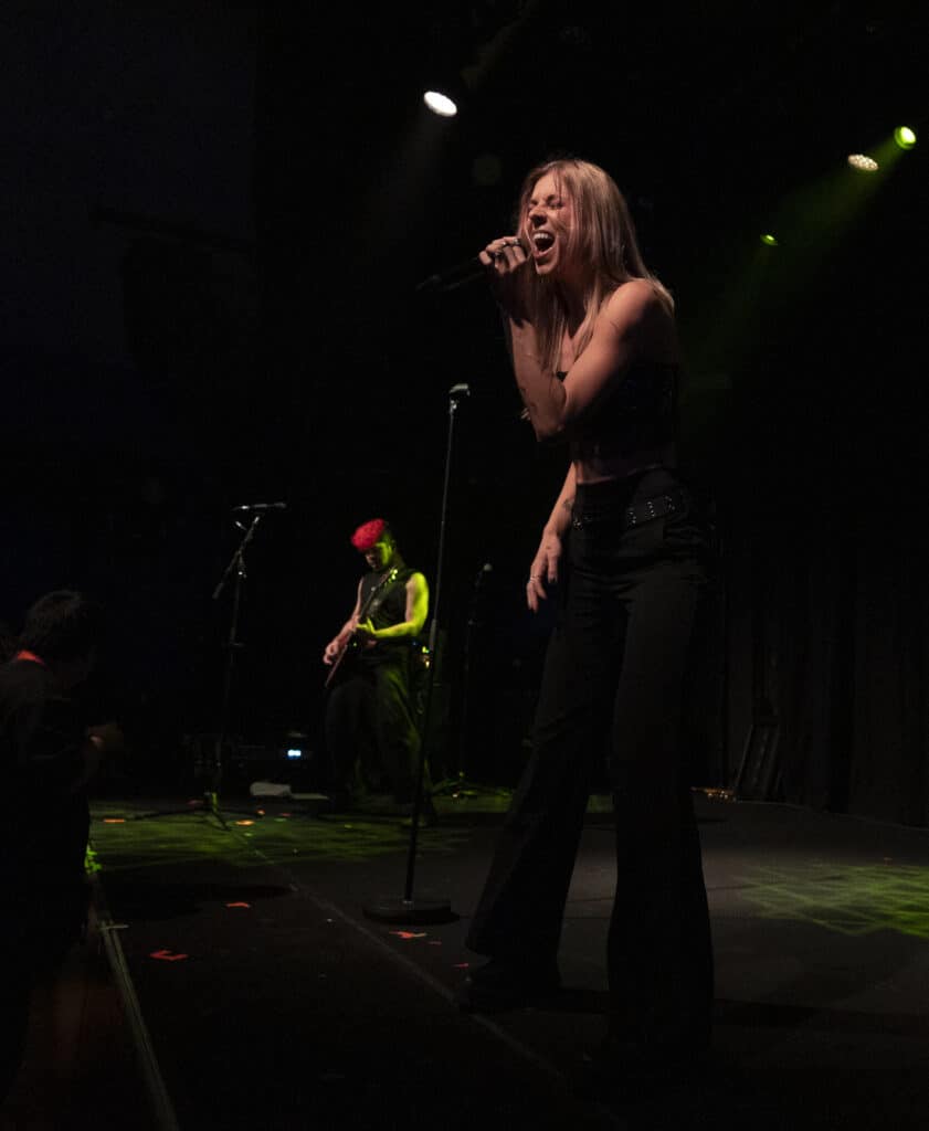 Acorn’s sound draws an obvious lineage from artists like Avril Lavigne and Paramore, but tonight the energy feels unmistakably her own. Guitars snarl, choruses explode, and Acorn prowls the stage with the easy charisma of someone who understands exactly how these songs are meant to live.