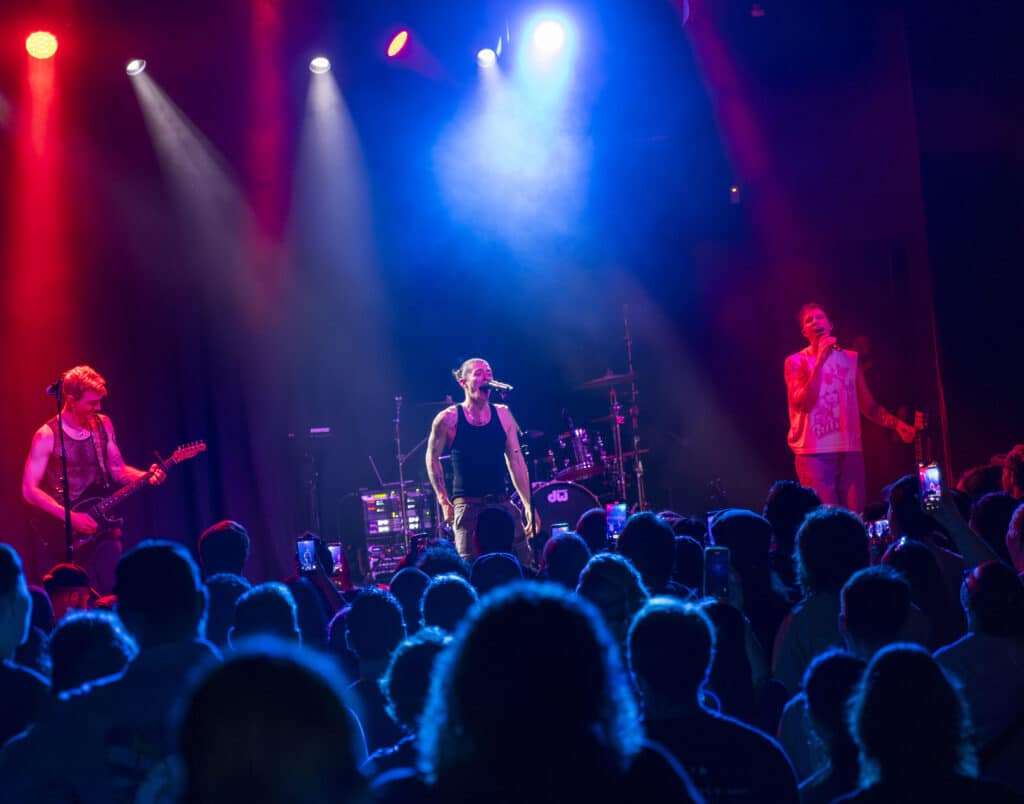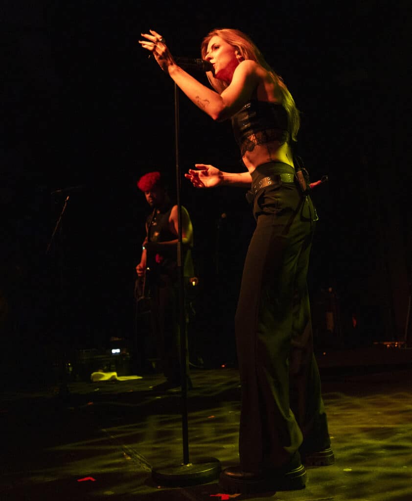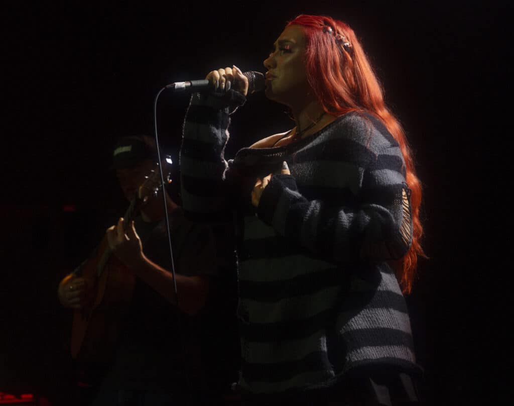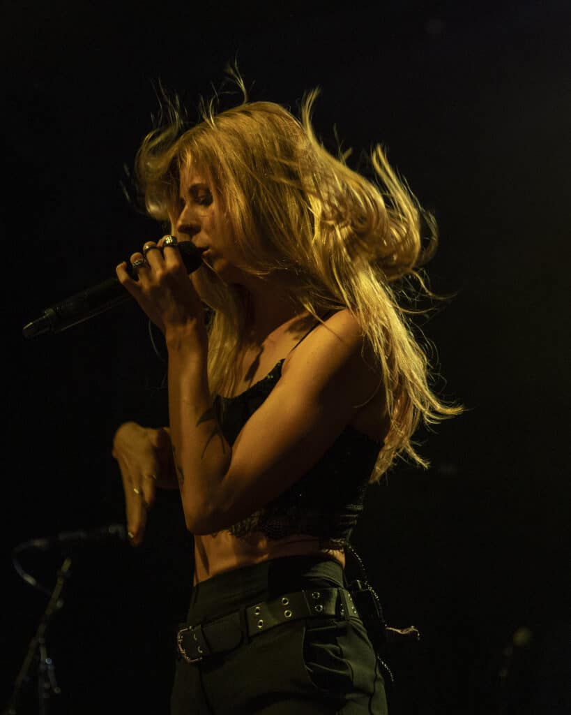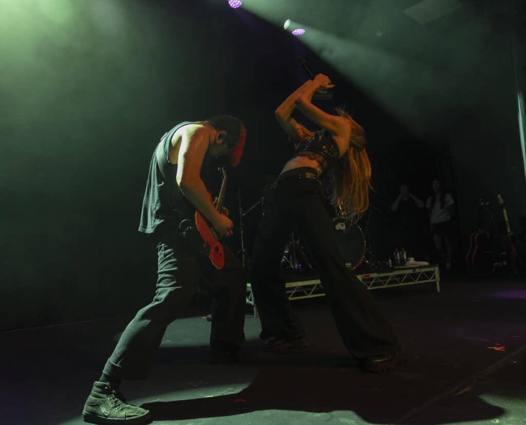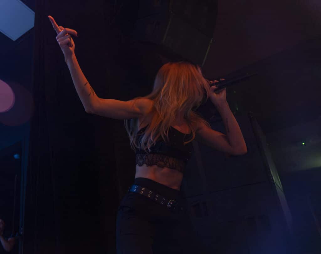 Acorn’s sound draws an obvious lineage from artists like Avril Lavigne and Paramore, but tonight the energy feels unmistakably her own. Guitars snarl, choruses explode, and Acorn prowls the stage with the easy charisma of someone who understands exactly how these songs are meant to live.