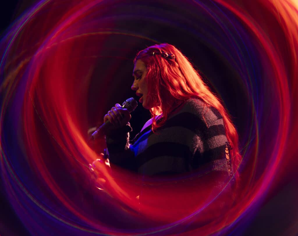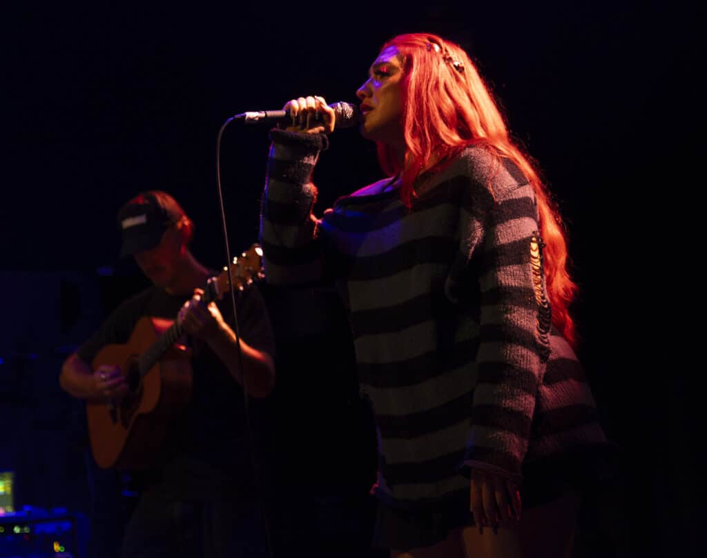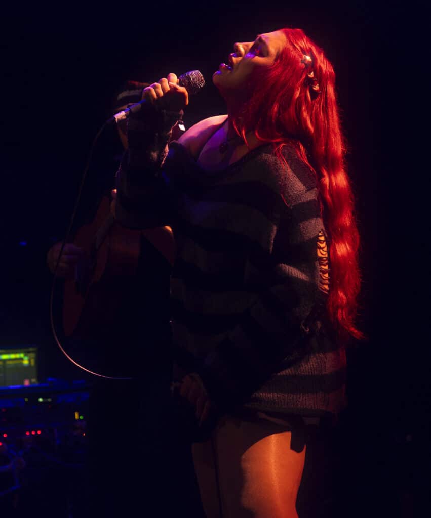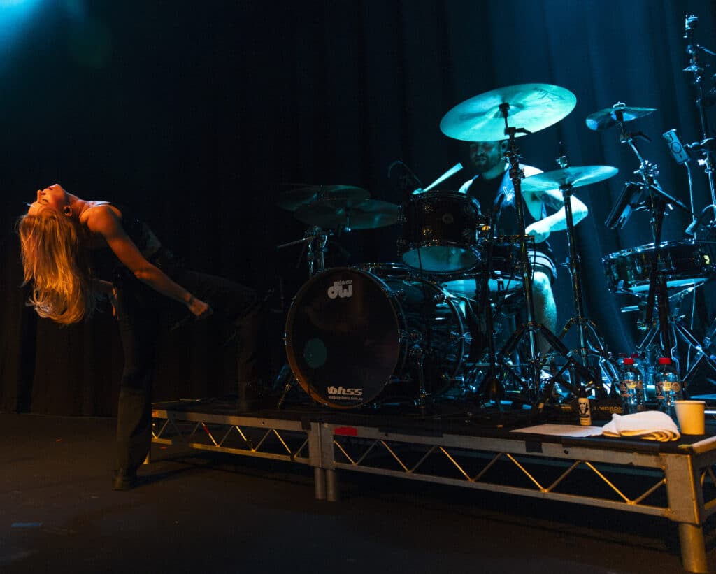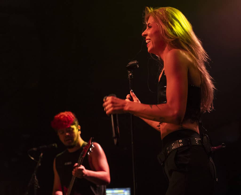 Acorn’s sound draws an obvious lineage from artists like Avril Lavigne and Paramore, but tonight the energy feels unmistakably her own. Guitars snarl, choruses explode, and Acorn prowls the stage with the easy charisma of someone who understands exactly how these songs are meant to live.