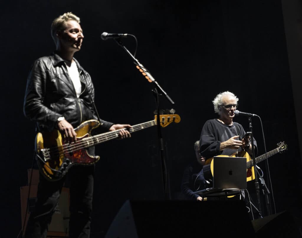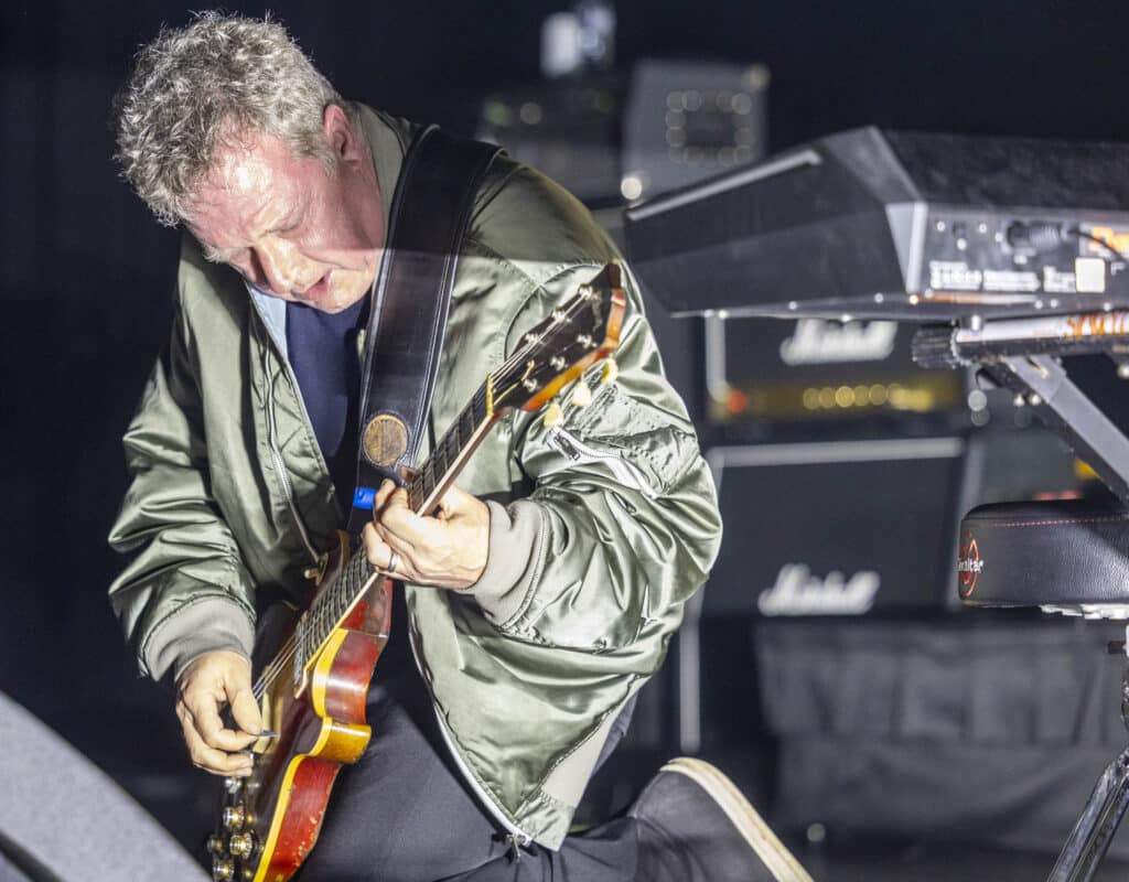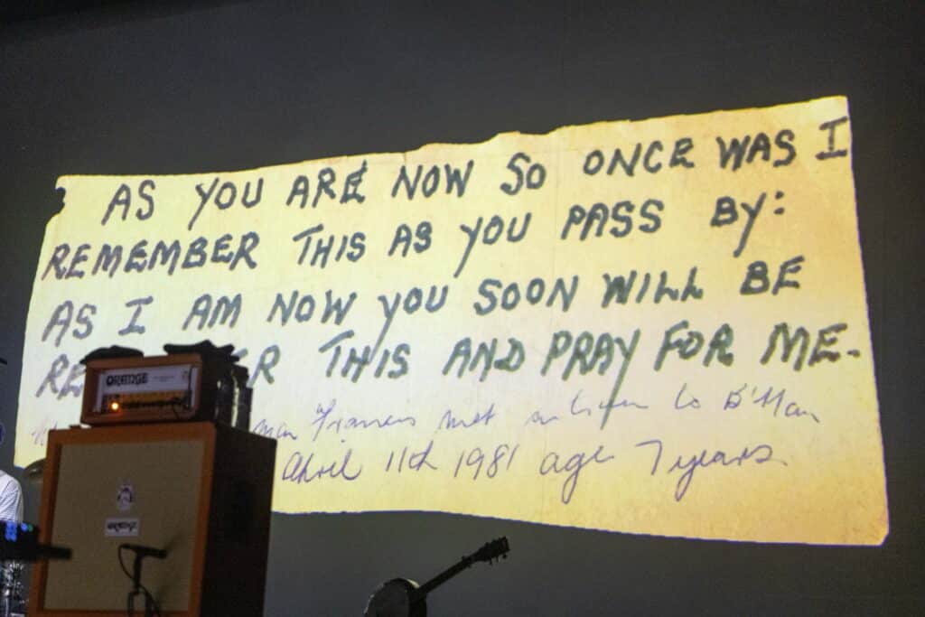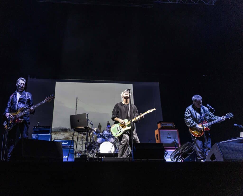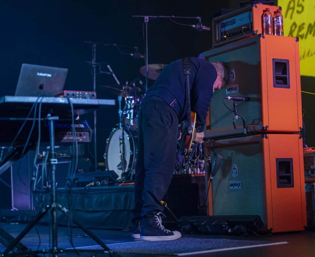 The stories keep folding into the music. As You Are is introduced via a poem handed to Healy by an elderly man on a train while travelling with his mum, the original note projected above the band as Dunlop thrashes out jagged lines, burying his head into one of the towering Orange amps. Healy drifts through memories of Millport and its looming nuclear power station, early rehearsals at Glasgow’s Horseshoe Bar, and the resistance they faced trying to convince their label to release Why Does It Always Rain on Me?. The band pitched it as a Wimbledon-timed single, because it always rains at Wimbledon…only that year it didn’t. But they were redeemed at Glastonbury in 1999 when the heavens opened mid-song, sealing the band’s breakthrough. Another slide appears: a cassette labelled Luv, recorded for a girlfriend who, by Healy’s account, was unimpressed by the gesture. It’s funny, self-aware, and oddly revealing. By the end, it feels like a living archive of how small, half-formed moments harden into songs that last. It’s a reminder, too, of how long it’s been since Travis last spent real time in Australia, and how welcome it would be if they returned to our shores soon again.
