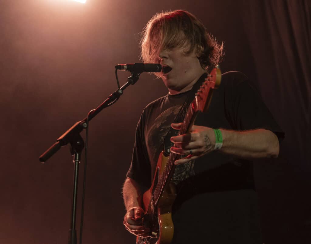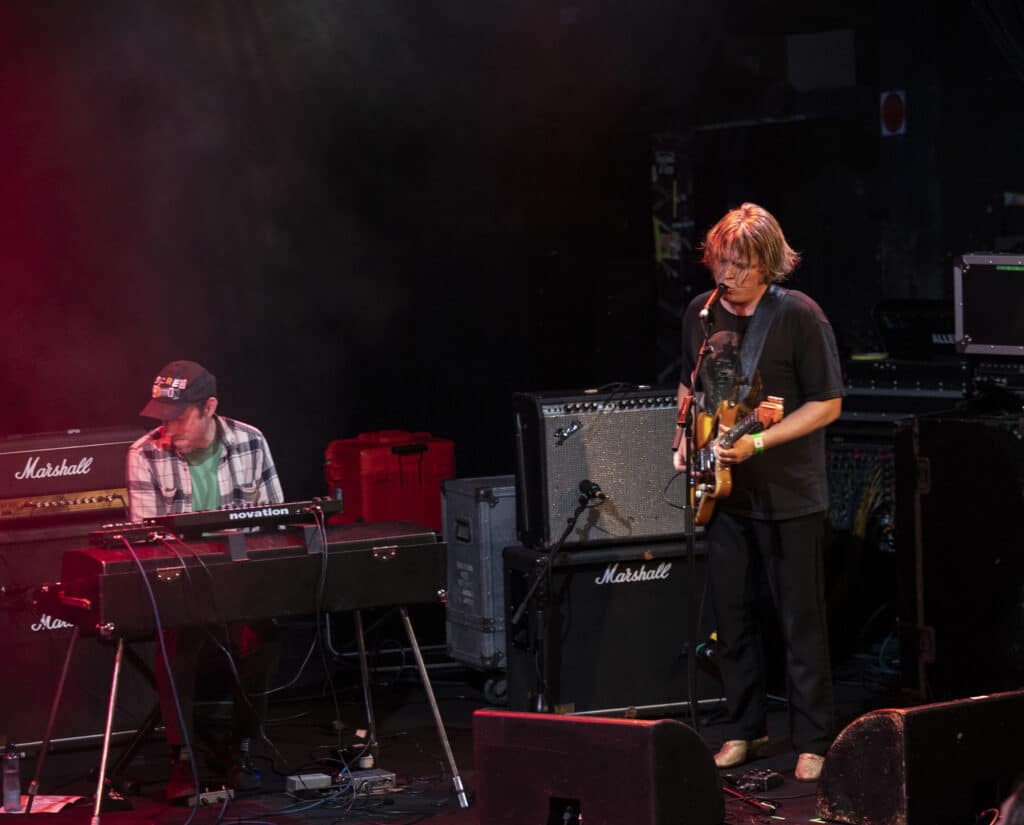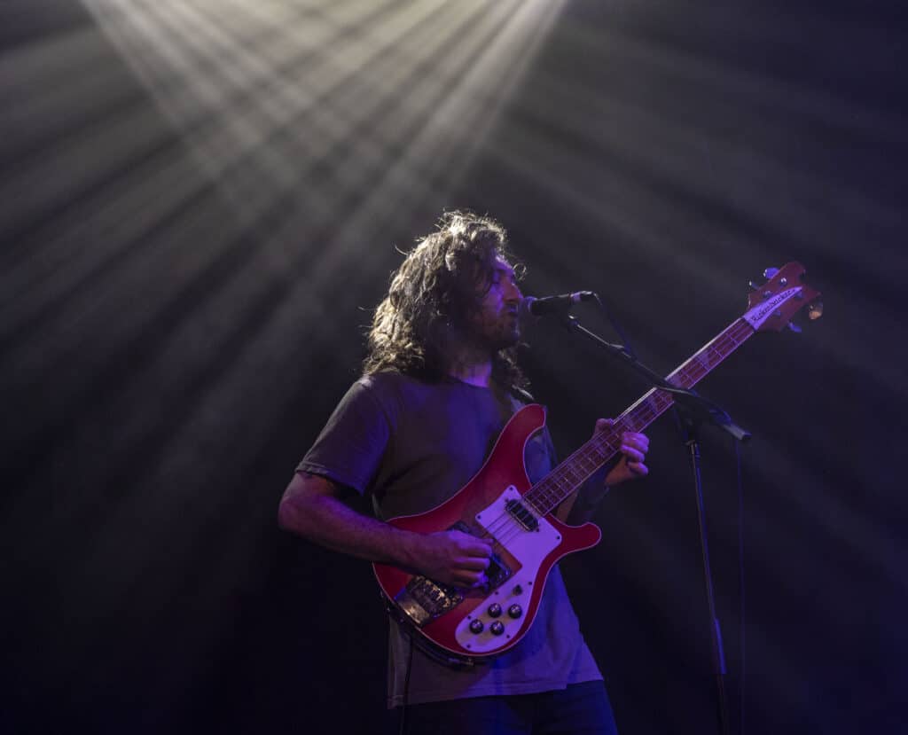 When Segall steps into the light alongside his band, there is no ceremony. The guitars arrive first, distorted and immediate, Segall leaning into the instrument like it owes him something. The sound is enormous without becoming blunt, every note deliberate, every shift in tone purposeful.