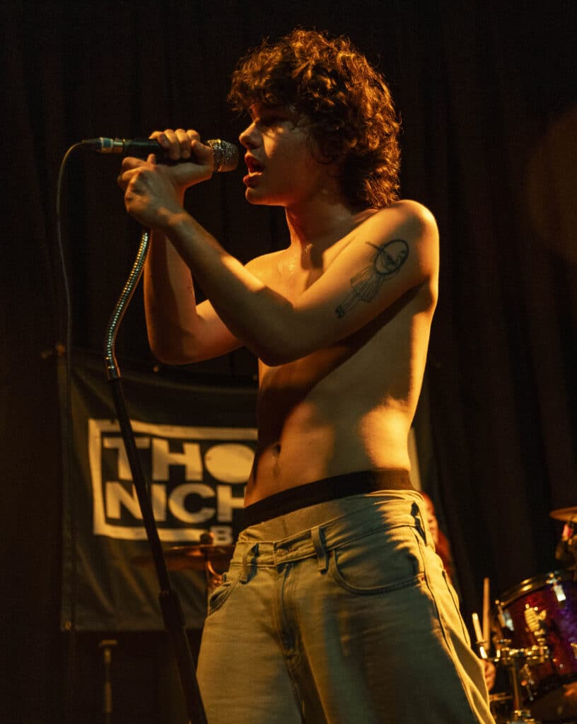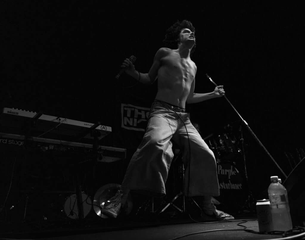 Local support Purple Disturbance kick things off with a set that leans into volume and grit, warming the room quickly. Lead singer Thomas Downes, throws himself around the stage with little regard for self-preservation. I recognise him from the Viagra Boys gigs a few nights ago-he was on the barrier and engaged in banter with Sebastian Murphy.
