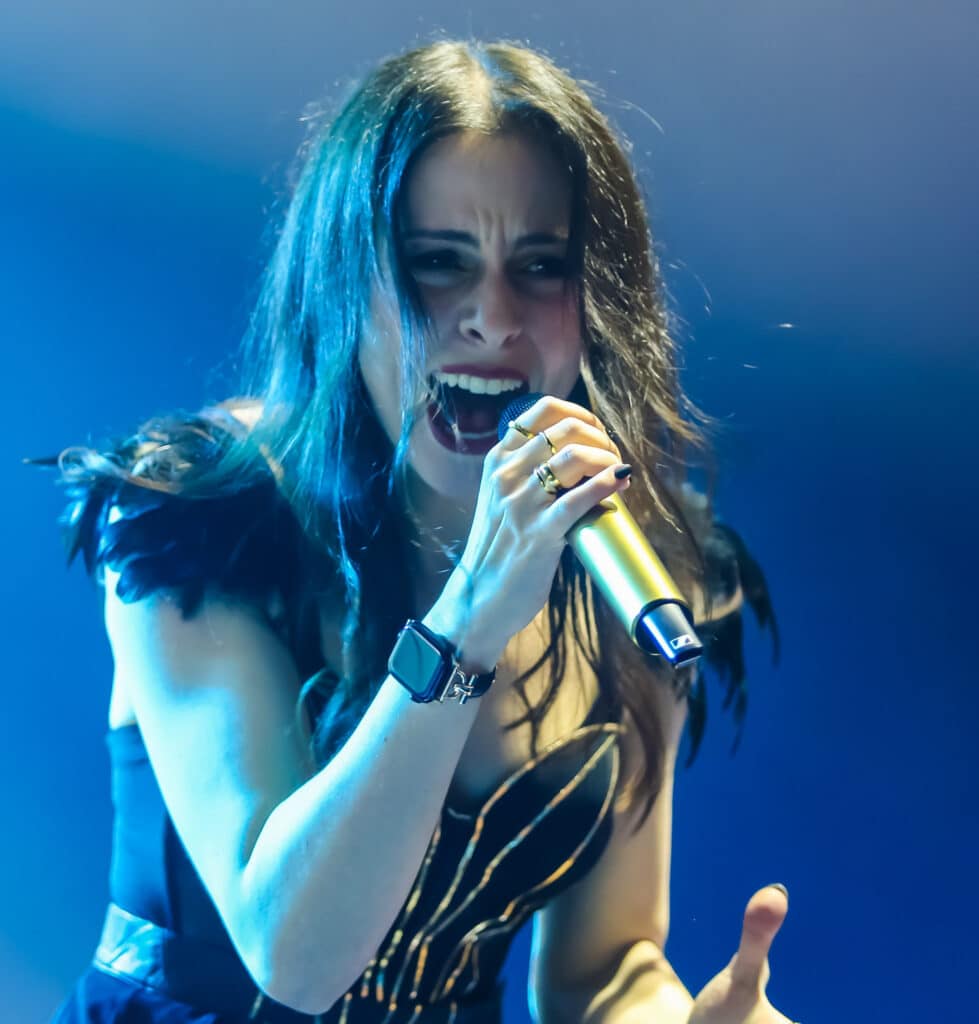 When Beyond The Black finally took the stage, the sense of anticipation was unmistakable. Although the band’s symphonic metal sound often feels tailor-made for much larger venues, the intimacy of the Ritz worked entirely in their favour, making the performance feel immersive rather than distant. From the opening moments, the band sounded confident and polished, blending driving metal riffs with layered melodies and atmospheric elements that filled the room without overwhelming it. Jennifer Haben was, unsurprisingly, the focal point throughout the set, her vocals soaring effortlessly above the instrumentation. She moved seamlessly between delicate, emotional passages and powerful, anthemic choruses that invited the crowd to sing along, and Manchester responded enthusiastically.