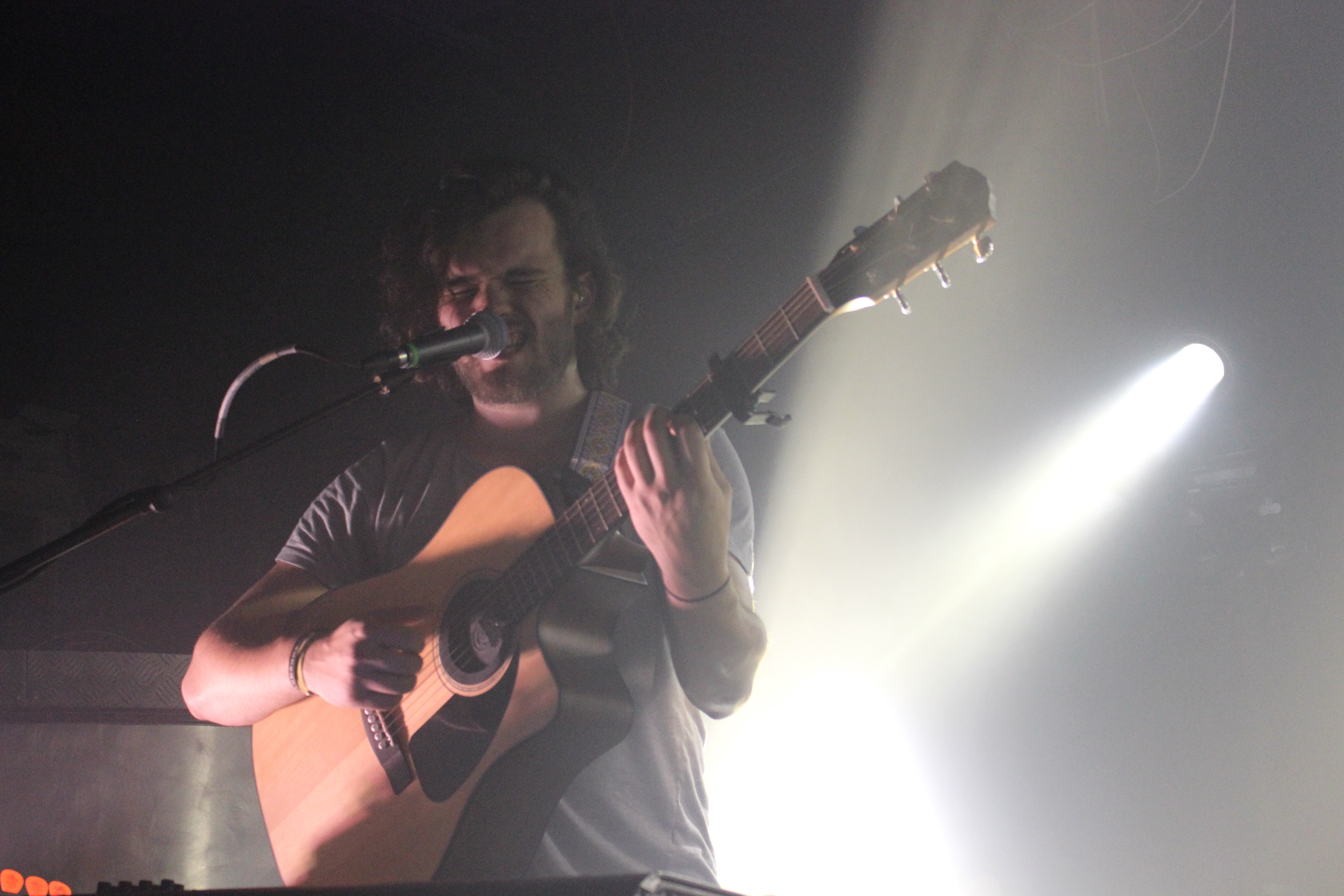 “You can tell things are about to get emotional now, because Callum is holding a wooden instrument,” Stewart tenatively told the crowd. Instrumentalist Callum Wiseman agreed, claiming the acoustic guitar is “the universal symbol of heartbreak” as he began to play ‘Same Mistakes’, one of the slower ballads from their debut LP.