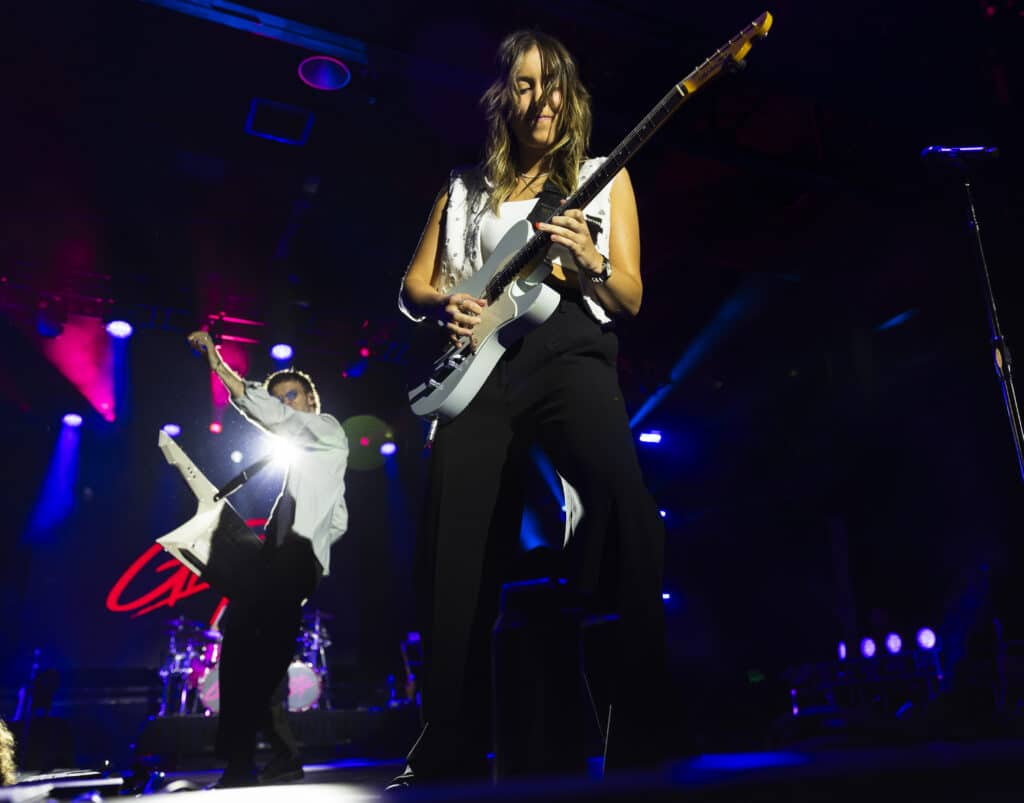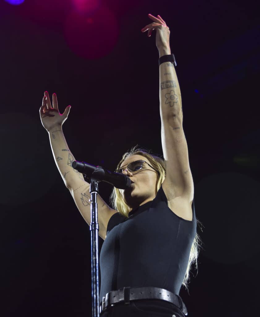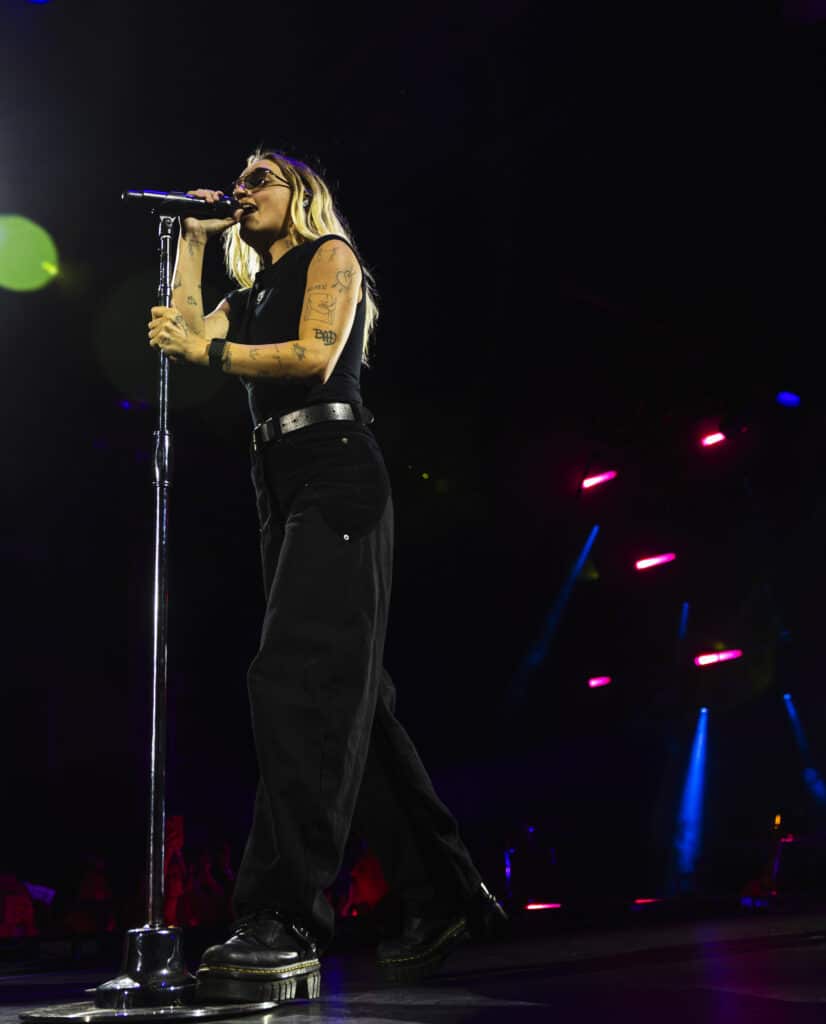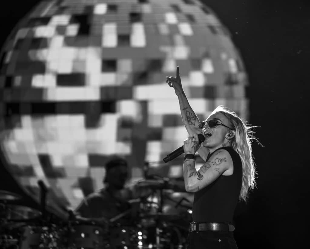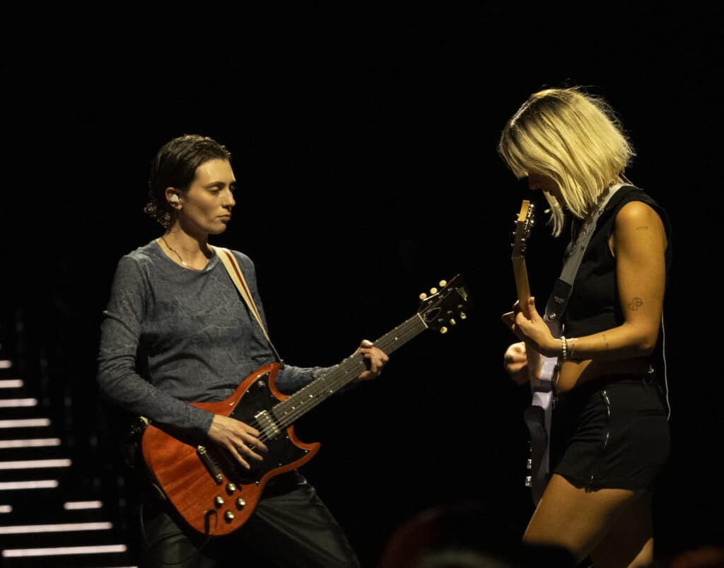 They open with ‘Disco Cowgirl’, the ARIA-nominated single detonating from the first beat, before moving straight into ‘Gay 4 Me’, a vast rainbow flag unfurled and carried across the stage. It’s a confident and deliberate opening, setting both the tone and the intent for the night.