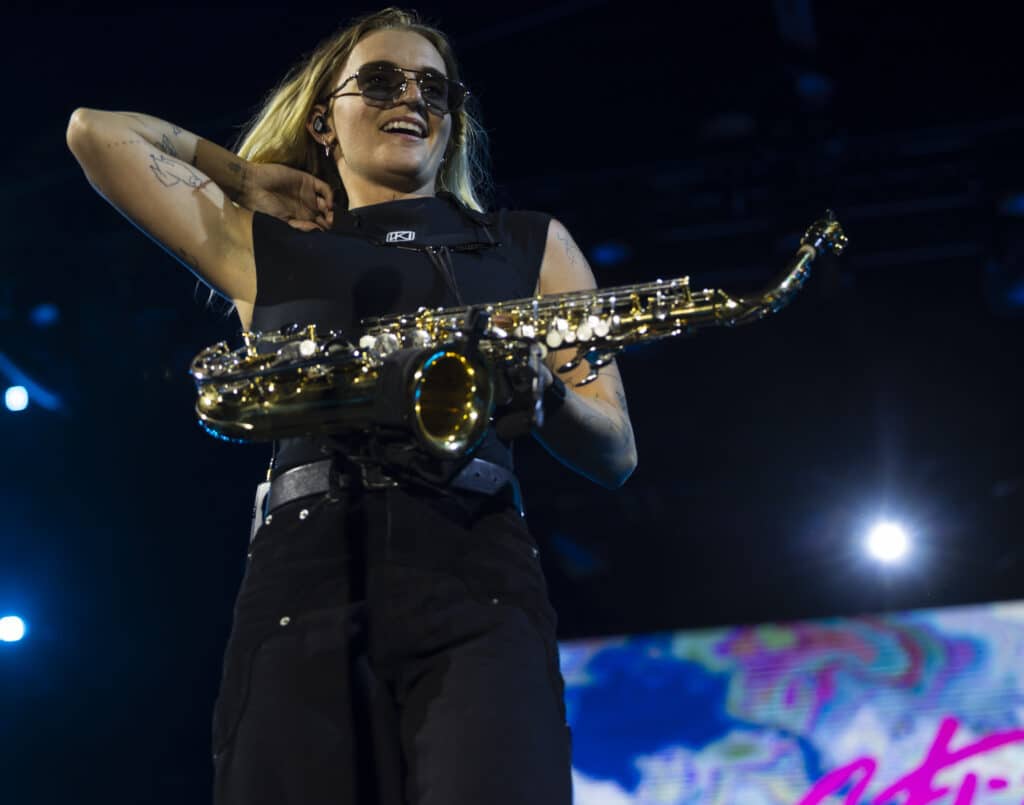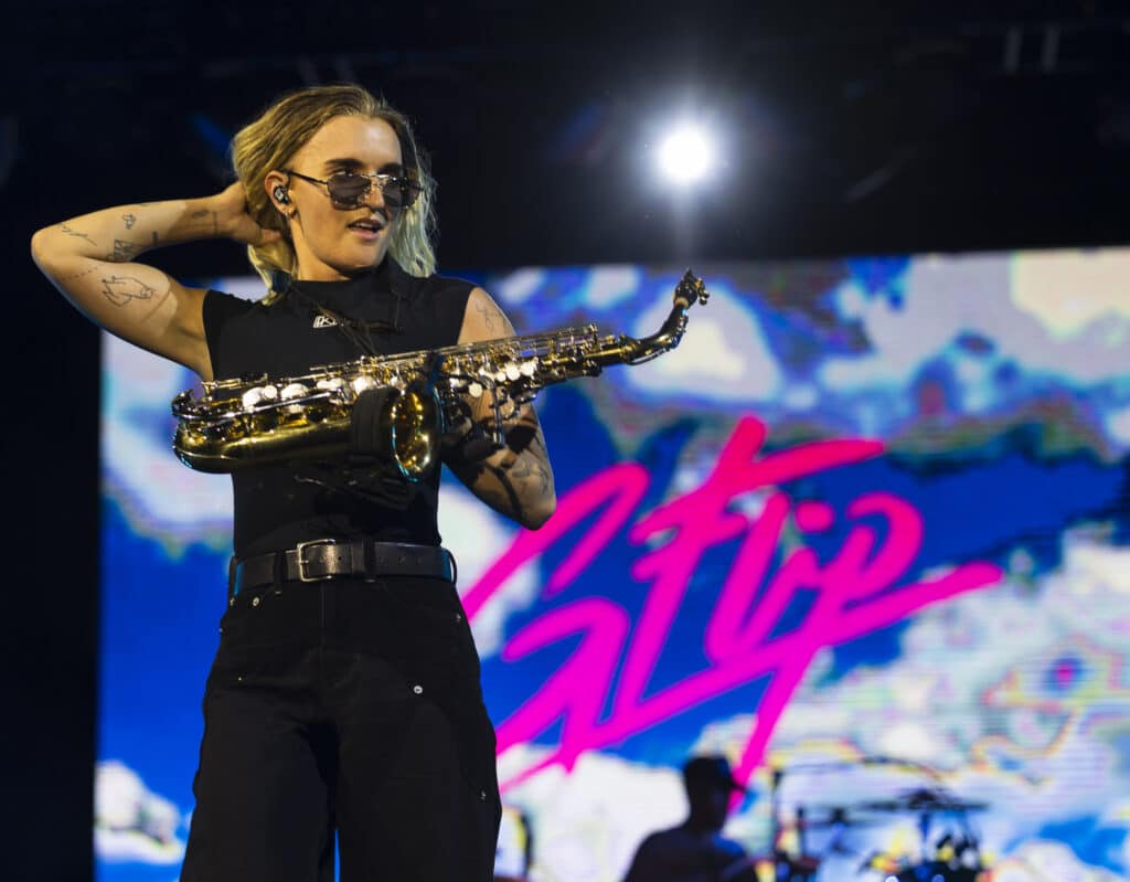 Musically, G Flip remains a formidable presence. Best known for their drumming, they are unmistakably a multi-instrumentalist, moving fluidly between instruments and at one point, saxophone, adding a brassy flourish that cuts cleanly through the mix.
