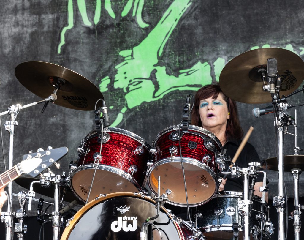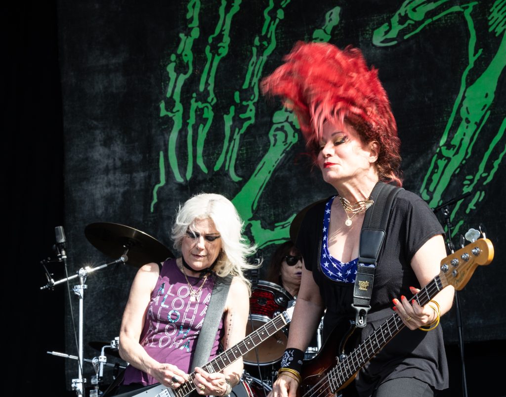 Then it’s a dash to L7—personal heroes of mine—and they’re everything I hoped for. Donita Sparks and Jennifer Finch lead the charge with a blistering set, Finch headbanging so hard it’s a miracle she stays upright.
