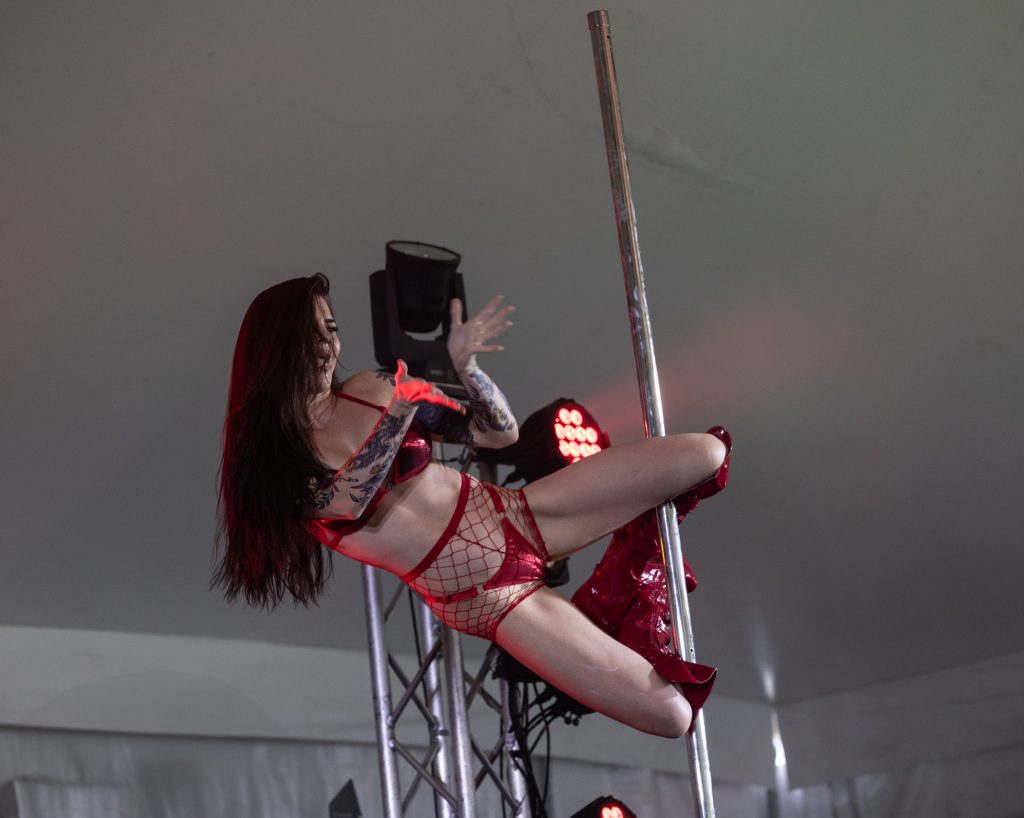 I bail to the cover of the Oozing Future Freakshow tent just in time to catch a guy casually driving nails into his face while a pole dancer spins overhead. Stage 666 is now packed to the brim with soggy festival-goers, where an impromptu live-band karaoke rendition of Bohemian Rhapsody morphs into a raucous singalong.