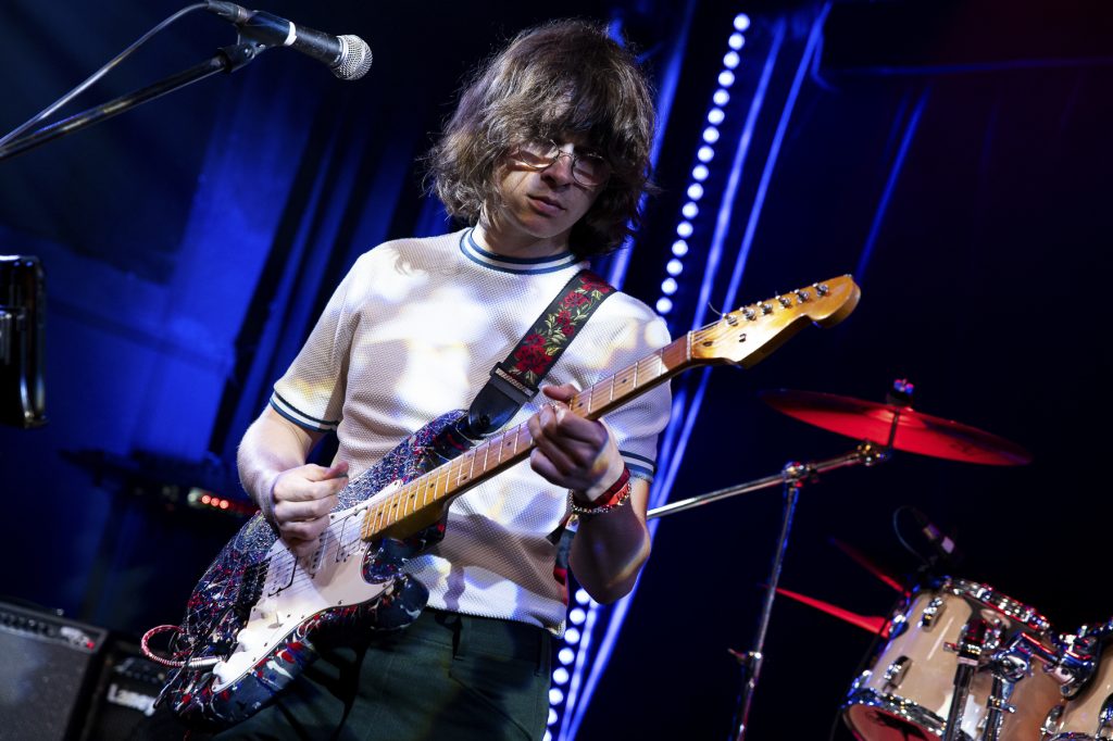 Back in The Forum End Credits play a cracking set of psychedelic indie rock. Songs about modern Britain and it’s ongoing problems, toxic relationships and escapism from this Teesside four piece. Packed with energy their sound encompasses everything from 60’s funk to the Britpop rock of bands like Oasis and it’s well appreciated by the decent sized crowd to see them.