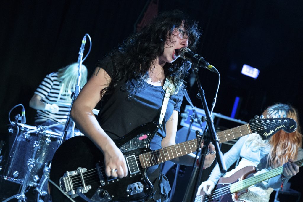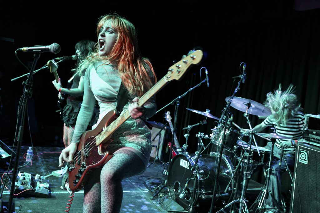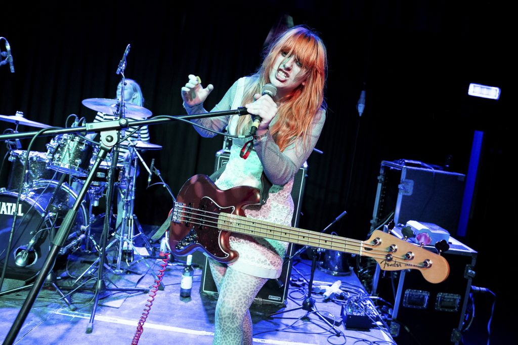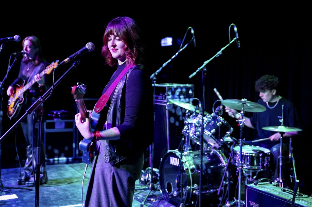 Maeve and The Trains open proceedings in The Forum and deliver a glorious 30 minutes of punk influenced indie pop. This ‘leftist, riot grrrl’ North East three piece full of driving guitar sounds and catchy bass rhythms switch easily between slower numbers and full on raucous noise and they’re clearly having a lot of fun as they do so.
