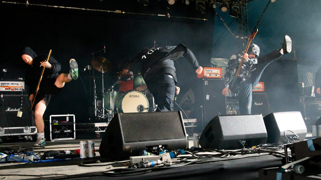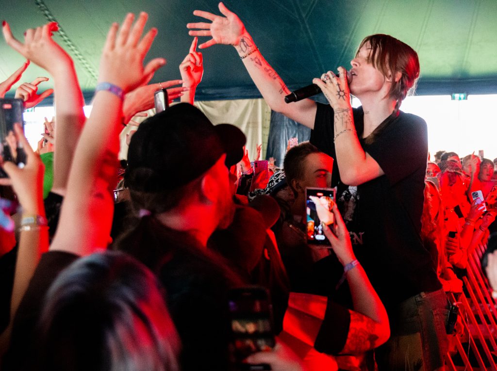 The Murder Capital rather incongruously rocked the Dance Stage, sneering and defiant, partly due to being late on stage after an over-running previous act. It was South Wales’ turn on the Festival Republic stage as HIMALAYAS hit hard from the off with Leave This Place. By the time they wrapped up with From Hell to Here, there were circle pits bouncing and crashing around the arena.