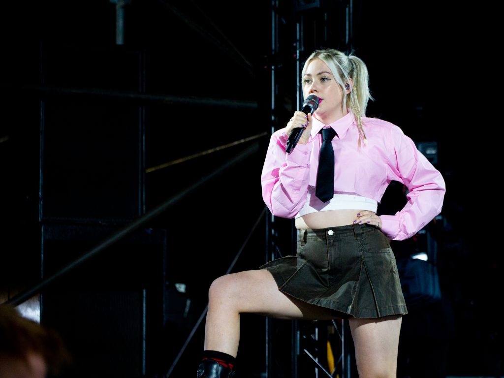 The crowd quickly expanded for Nieve Ella in the Radio 1 Dance Tent, as people ran for cover from a torrential downpour, and it was no more than she deserved. She gives vibes of Holly Humberstone, but with more grit and edge and those who came in just to shelter from the rain will be happy they did. Similarly for Hannah Grae, on the BBC Introducing Stage, a few extra gathered and were treated to a hugely energetic set full of songs of teenage angst taken from her first album Hell is a Teenage Girl.