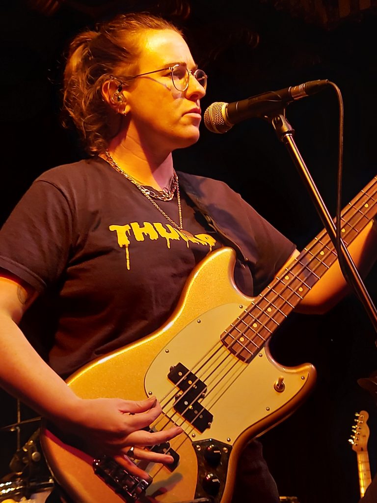 And so to Pillow Queens. There was much shuffling forward as the gig approached. The 4-piece came on to a raptuous reception from the Edinburgh crowd. This is the first time they have played in Edinburgh and it definitely won’t be the last. The set opened with ‘Holy Show‘, the opening track from In Waiting. Lead vocalist Pamela Connolly is just wonderful live, powerful and full of passion and from the very start the crowd sang along. The four piece are relaxed and comfortable on stage. Getting to the final stages of their tour they admitted to being “in bits” but it did not show in this performance. Highlights included ‘How Do I Look‘ and ‘Gay Girls’ where Pillow Queens encapsulate thought-provoking personal lyrics with their glorious harmonies and soaring soundscapes to ultimate effect. There was great chat from the band throughout and as mentioned the second album is already finished. Pillow Queens considered asking the audiences on tour for their feedback on the new songs, but then realised the album is locked down so perhaps not the best idea! So we were treated to ‘In Waiting‘ in full and a couple of new tracks.