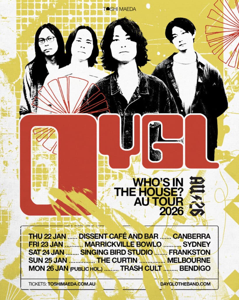 With their first-ever Australian shows just days away, Tokyo four-piece DYGL arrive at a pivotal moment. Ahead of the tour’s opening dates, the band have released their latest album Who’s In The House? locally via Cheersquad Records & Tapes, giving Australian audiences a timely entry point into their most recent chapter.