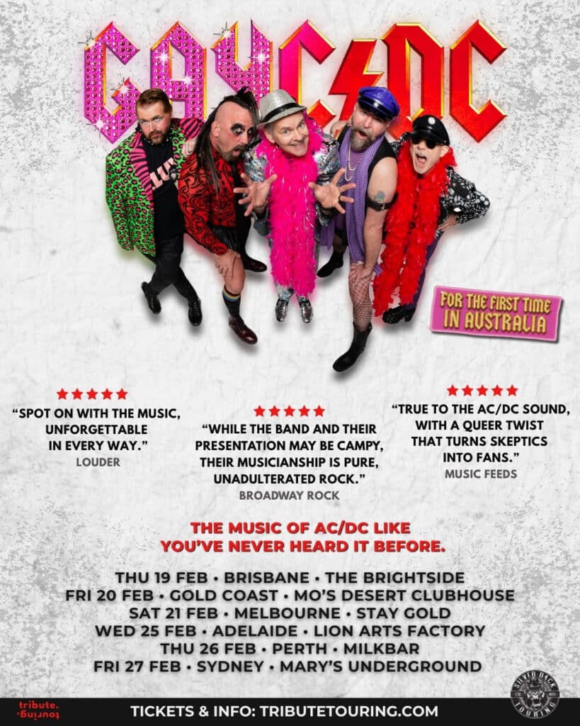 There are tribute bands, and then there are concepts so pointed they end up rewriting the rules they started with. GAYC/DC sit comfortably in the second category. Taking the catalogue of AC/DC and running it through unapologetic queer celebration sounds like a novelty pitch. Then the band hits the first riff and the idea stops being theoretical.