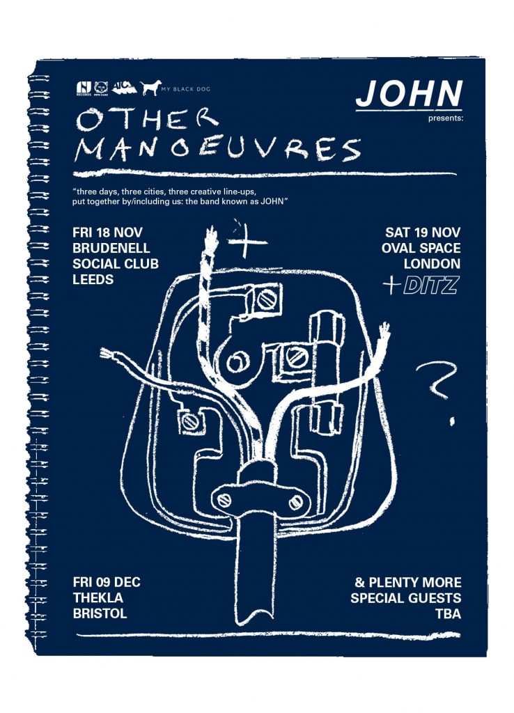 After releasing their much lauded Nocturnal Manoeuvres album in October last year, JOHN – aka John Newton (drums, lead vocals) and Johnny Healey (guitar, backing vocals) have announced – live on stage at the anniversary of Mclusky’s Do Dallas last week at London’s Electric Ballroom, three statement dates under the banner of Other Manoeuvres.