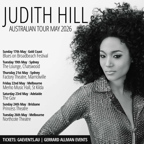 Grammy-winning singer, songwriter and multi-instrumentalist Judith Hill will bring her blend of soul, funk and gospel to Australia in May 2026, performing headline shows in Sydney, Melbourne, Brisbane, Adelaide and the Gold Coast, with an appearance at Blues on Broadbeach. The tour marks the live debut of her new album Letters from a Black Widow, a work that reflects on loss, legacy and artistic renewal.