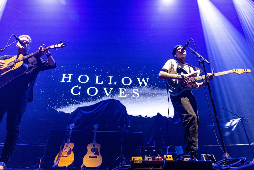 Queensland based band Hollow Coves are the opening act. The band is made up of Ryan Henderson and Matt Carins and their indie folk is the perfect aperitif for the Lumineers. The crowd is enjoying their set and someone shouts “I Love You” Henderson and Carins seem quite taken aback. Hollow Coves leave the stage and the crowd waits expectantly for the Lumineers to emerge.