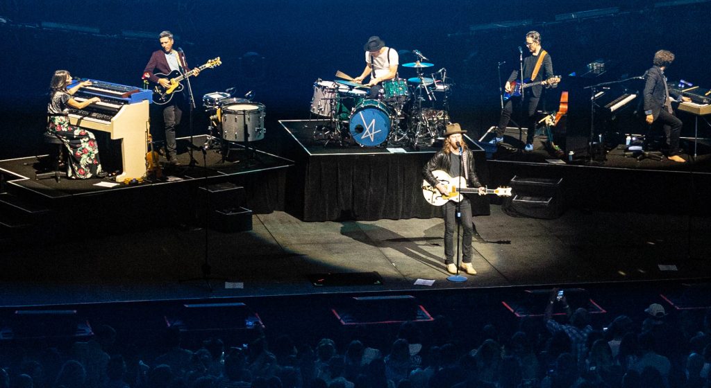 The Lumineers are back in Australia and New Zealand as part of their ‘Brightside’ World Tour 2022. This is their first trip to our shores in three years. Tonight the Aware Super Theatre is hosting a capacity and excited crowd. This is a truly impressive venue, its steeped levels shrouded in haze, as I enter.