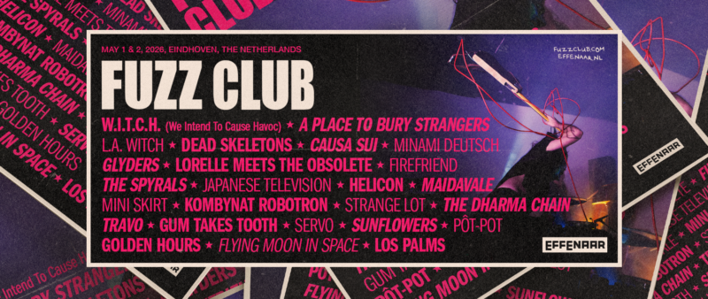 Spanning all continents and 16 countries overall, the complete Fuzz Club Festival 2026 line-up now includes: W.I.T.C.H (ZM), A Place To Bury Strangers (US), L.A. Witch (US), Dead Skeletons (IS), Causa Sui (DK), Minami Deutsch (JP), Lorelle Meets The Obsolete (MX), Glyders (US), The Spyrals (US), Japanese Television (UK), Helicon (UK), MaidaVale (SE), Firefriend (BR), Travo (PT), Mini Skirt (AU), Strange Lot (US), Kombynat Robotron (DE), The Dharma Chain (DE/AU) Gum Takes Tooth (UK), Servo (FR), Sunflowers (PT), pôt-pot (IE/PT), Golden Hours (BE/DE), Flying Moon In Space (DE) and Los Palms (AU)